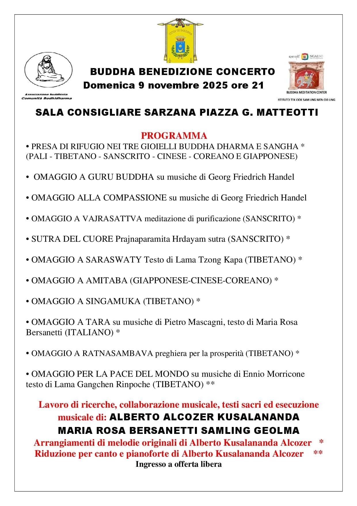 BUDDHA BENEDIZIONE CONCERTO A SARZANA - 9 NOVEMBRE ORE 21,00 - SALA CONSILIARE October 14, 2025 Musang am